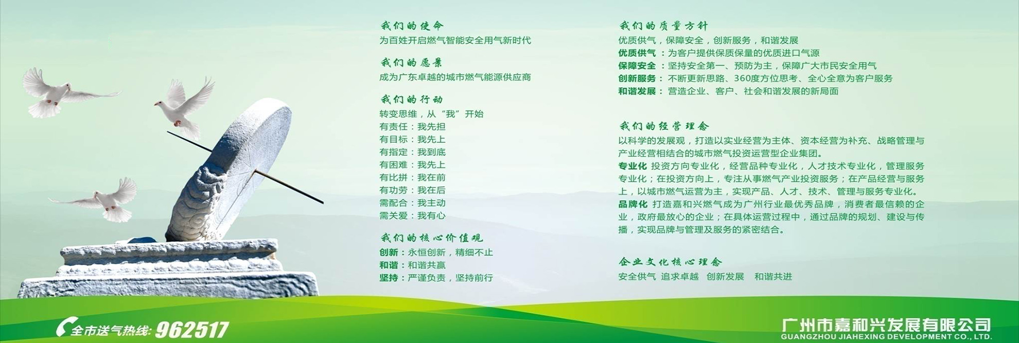公司在廣州經營多年的液化氣的過程中,積累了大量的行業(yè)資源,積極配合政府管理及倡導行業(yè)溝通協調。現在“嘉和興”已成為廣州液化氣市場的著名品牌。